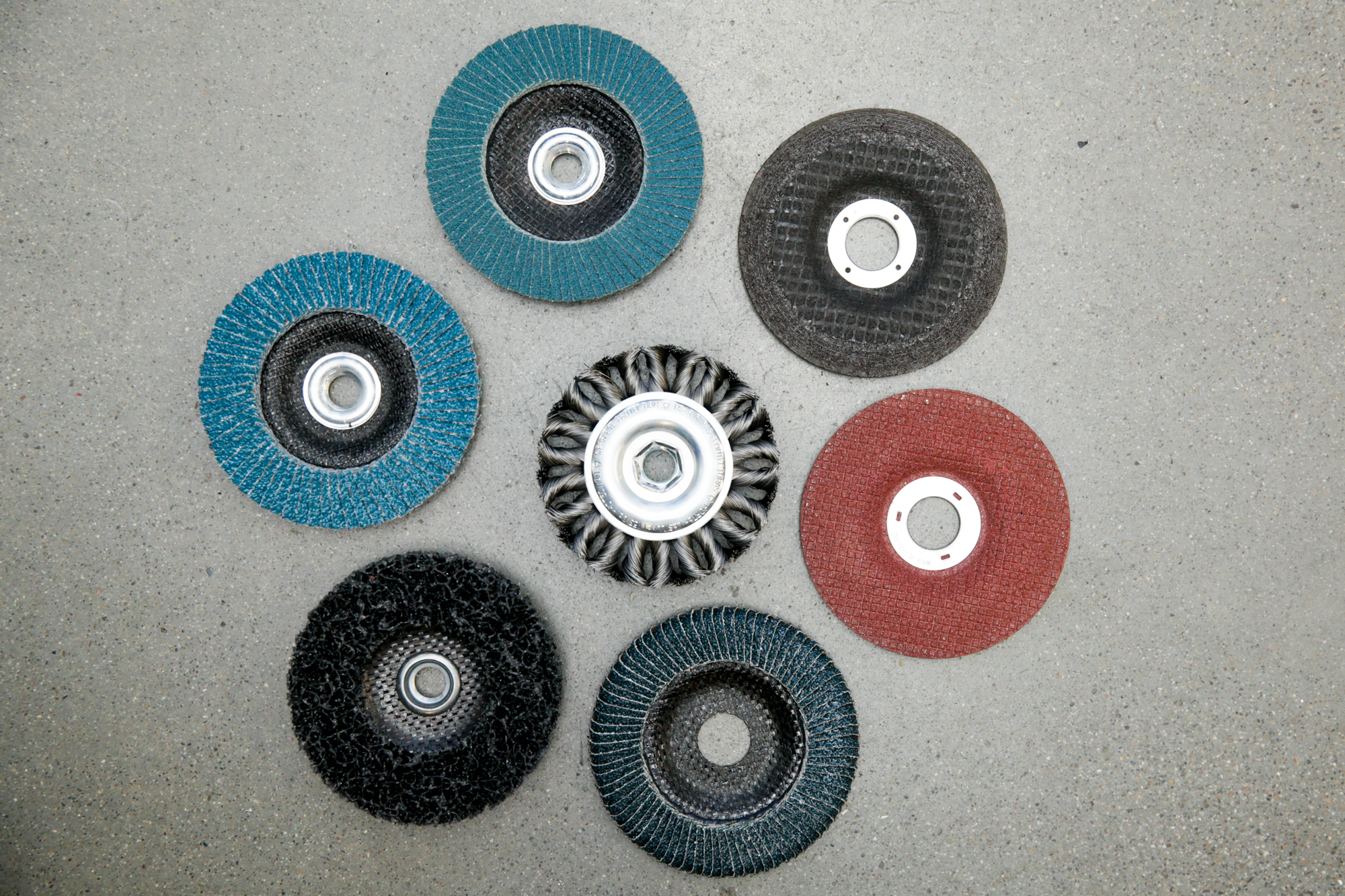 You have lots of options for what kind of wheel you attach to your angle grinder. Most commonly you will be using flap wheels and cut-off wheels. Flap wheels are rated similarly to sand paper, with specific grit sized being called out on the back of the wheel. The lower the number, the faster it will rip down material. Cut-off wheels are used for making cuts in rod and pipe, but also handy for tough grinds that would cause excessive wear on a flap wheel.